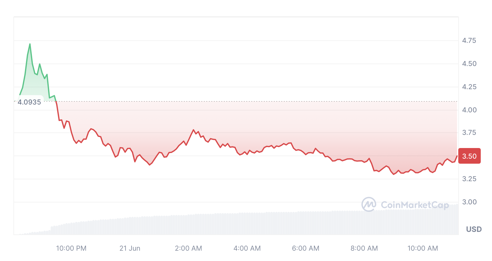 ZRO hiện đang giao dịch với giá 3,35 USD, giảm 17% trong 24 giờ qua, theo dữ liệu của CoinMarketCap.