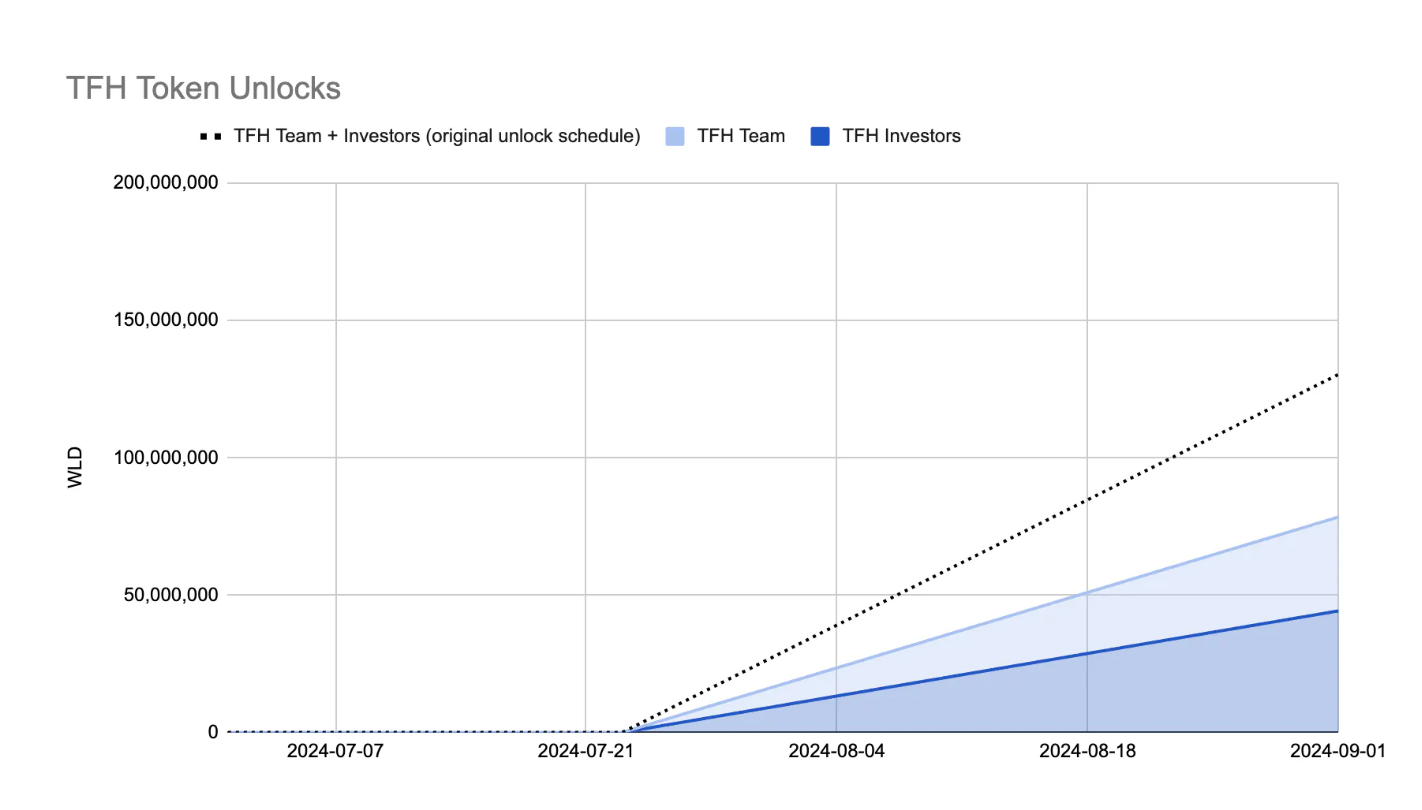 Theo bài đăng trên blog ngày 16 tháng 7, TFH đang gia hạn lịch mở khóa cho 80% token Worldcoin (WLD) do các thành viên trong team và nhà đầu tư nắm giữ. Ban đầu được thiết lập để mở khóa trong khoảng thời gian ba năm, các token này hiện sẽ có thể truy cập được trong khoảng thời gian năm năm, bắt đầu từ ngày 24 tháng 7 năm 2024.