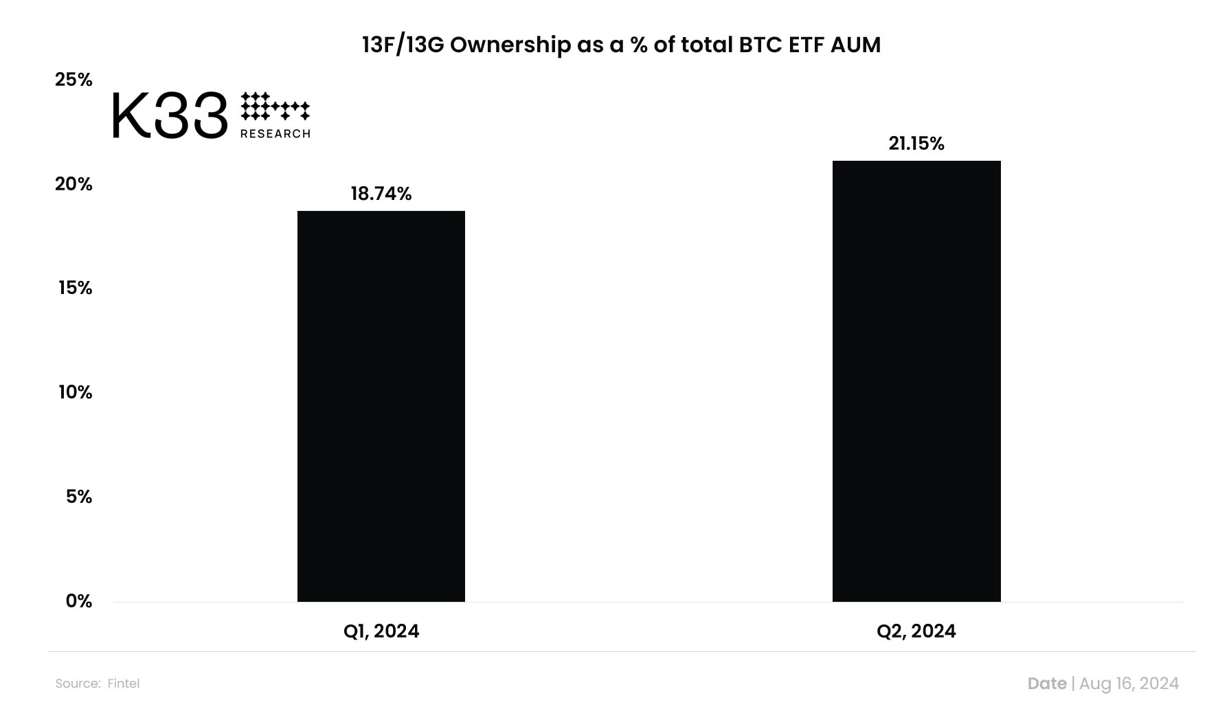 Tỷ lệ sở hữu 13F/13G trên tổng số BTC ETF AUM.
