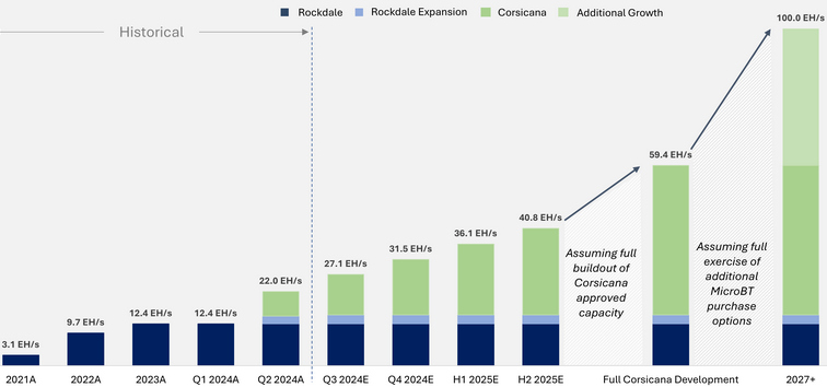 Công ty đặt mục tiêu đạt 100 EH/s vào năm 2027 hoặc ngay sau đó, mục tiêu mà công ty dự đoán có thể đạt được nếu công ty thực hiện đầy đủ quyền chọn mua thêm MicroBT trong tương lai.