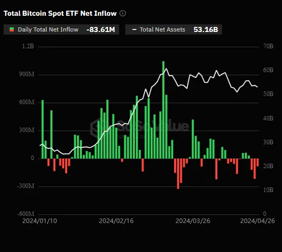 Động thái này có thể đánh dấu một cột mốc quan trọng, phản ánh sự nhiệt tình ở Mỹ. Kể từ ngày giao dịch đầu tiên, các quỹ ETF Bitcoin của Mỹ đã tích lũy được 53 tỷ USD tài sản ấn tượng. Theo dữ liệu của SoSo Value, Bitcoin ETF giao ngay ghi nhận tổng dòng tiền ròng âm trong ba ngày liên tiếp vào tuần trước. iShares Bitcoin Trust (IBIT), quỹ ETF Bitcoin giao ngay của BlackRock, một trong những quỹ ETF hoạt động hiệu quả nhất, đã không nhận được dòng vốn nào kể từ ngày 24/4/2024.
