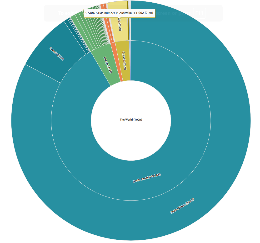 Vào tháng 4 năm 2023, số lượng máy ATM Bitcoin của Úc đã vượt qua châu Á, bao gồm các nền kinh tế lớn như Trung Quốc, Nhật Bản, Singapore và Ấn Độ.