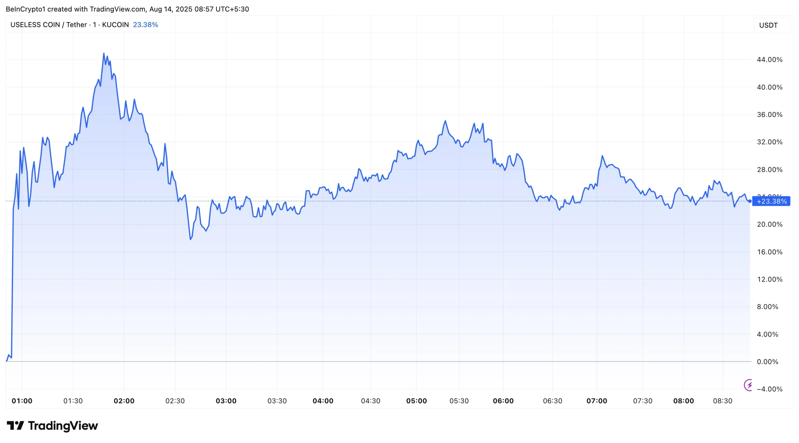 Tại thời điểm viết bài, meme coin USELESS đang giao dịch ở mức 0.27 USD. Điều này phản ánh mức tăng 23% kể từ khi được thêm vào lộ trình. Hơn nữa, khối lượng giao dịch hàng ngày đã tăng 192.8% lên 202 triệu USD.