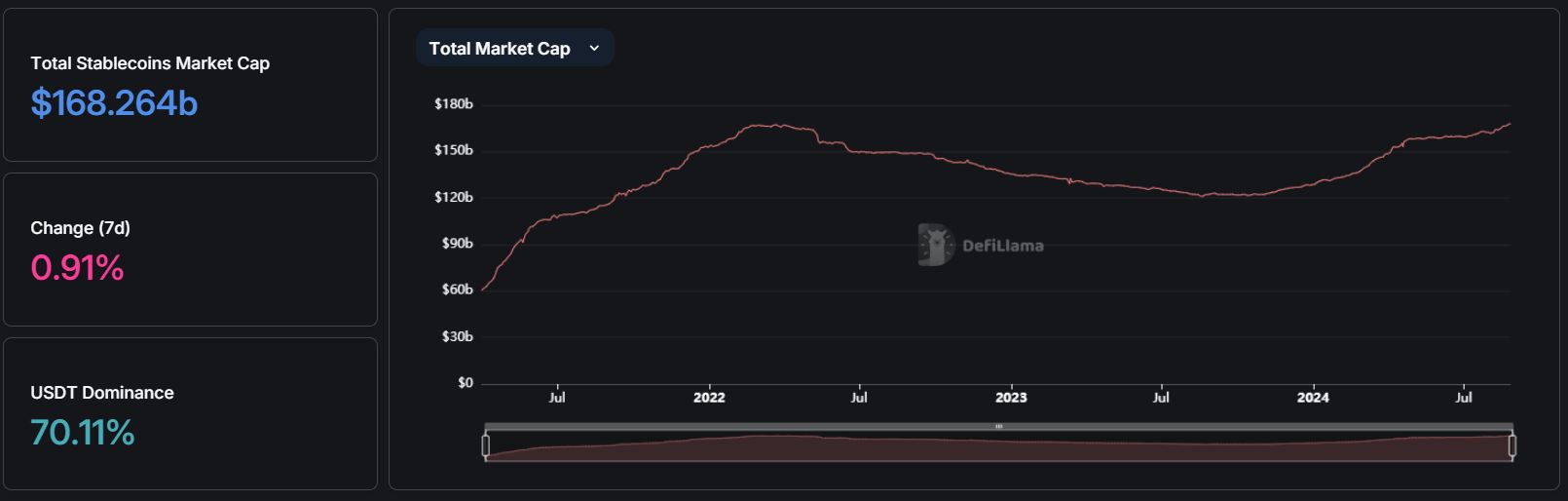 Vốn hóa thị trường Stablecoin đã đạt mức cao kỷ lục mới là 168 tỷ USD sau 11 tháng tăng trưởng liên tiếp.